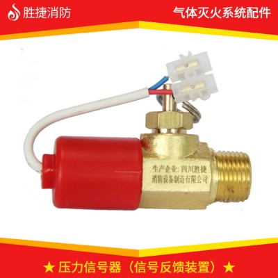 信號反饋裝置由閥體、活塞和微動開關(guān)等組成,安裝于選擇閥或選擇閥之后的主管路上,當(dāng)滅火劑釋放后其壓力推動壓力訊號器活塞,接通微動開關(guān),將信號反饋到滅火控制器。