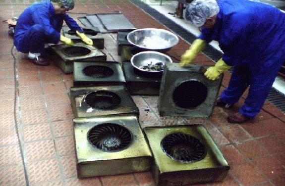 煙道清洗內(nèi)容包括煙罩表面、煙罩內(nèi)的燈罩、排風(fēng)口、排煙口以及電機(jī)、灶臺表面。煙道清洗的重點是排煙口與煙罩相連處并和煙罩同步平行的排煙道。重點對平行煙道內(nèi)部進(jìn)行徹底清潔。采用的主要方法是專業(yè)人員進(jìn)入煙道內(nèi)部進(jìn)行清潔。對于排煙口窄小,無法進(jìn)入煙道或由于煙道走身狹窄、觸及不到無法進(jìn)行清潔,但又存在著重大隱患的,本公司可利用特殊設(shè)備進(jìn)行清潔,不留死角,并可拍攝清潔前后的對比照片,打消客戶的疑慮和擔(dān)心,消除一切潛在的火災(zāi)隱患。風(fēng)機(jī)、風(fēng)柜與煙道連接的方法一般有兩種情況:一種是用帆布相連的軟連接,而另一種是直接與煙道相連的硬連接??商峁└鼡Q風(fēng)機(jī)、風(fēng)柜連接帆布的服務(wù)。如果是煙道硬連接,我們將與風(fēng)機(jī)、風(fēng)柜相連的煙道進(jìn)行徹底清潔。
