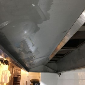 此法主要用于清洗50公分見方以上的豎煙道,技術人員先拆下管道的上截和下截,在煙道上方固定高空安全繩,系上安全帶,技術人員從上至下清洗豎煙道內(nèi)的油污。此法危險性較大,技術性強,費用較高,清理效果好。由于豎煙道一般積油較少一年清洗一次即可。