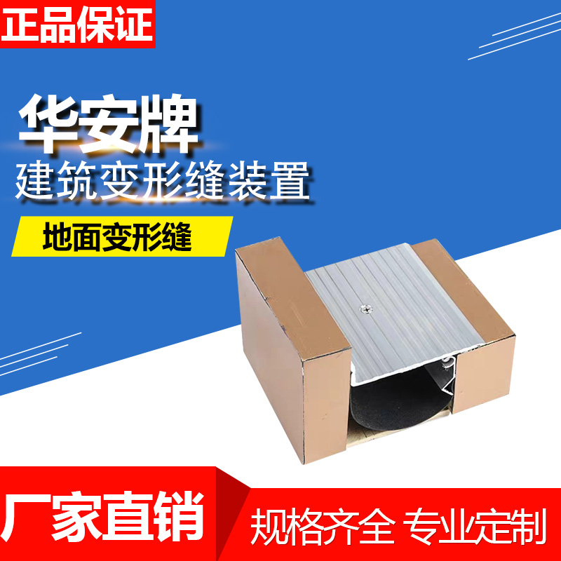 1.金屬蓋板型:由鋁合金基座、鋁合金(或不銹鋼)中心板、不銹鋼滑桿組成。適用縫寬50-450mm。金屬蓋板型的特點是在蓋板與固定于變形縫兩側的基座之間采用滑桿連接,當基座變位時,金屬蓋板始終保持位于縫的中心,當用于樓地面是可以增加蓋板厚度,提高承受能力。一般承載型荷載為18.4kN(7.5T叉車通過)。承重型可根據(jù)工程要求而定。
