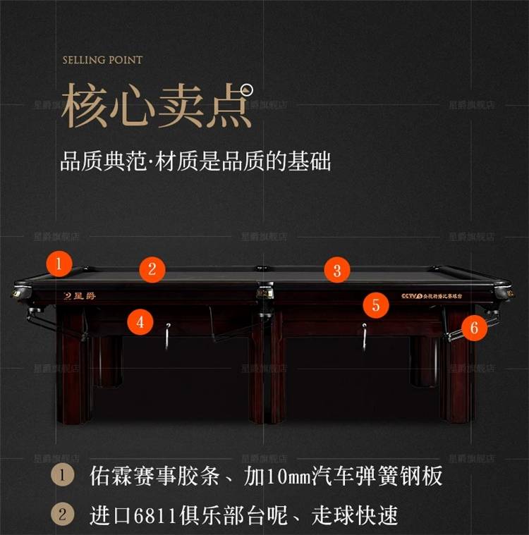 星爵中青賽比賽臺(tái)球桌,適合高端臺(tái)球俱樂(lè)部,公司活動(dòng)室,家庭及一些綜合性?shī)蕵?lè)場(chǎng)所用.在市面上算是性價(jià)比超高的一款臺(tái)球桌。臺(tái)球桌是由木頭的桌腿,大架,做底支撐,覆蓋一層石板,然后加上庫(kù)邊而成。在不同的角度,會(huì)有不同的標(biāo)準(zhǔn)。所以,不同的場(chǎng)合應(yīng)該使用不同的臺(tái)球桌,具體可以咨詢有豐富經(jīng)驗(yàn)的巴比倫臺(tái)球器材的客服13458559659。