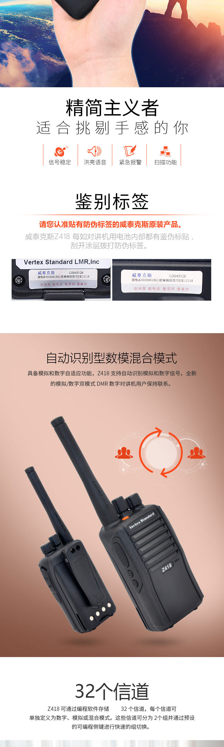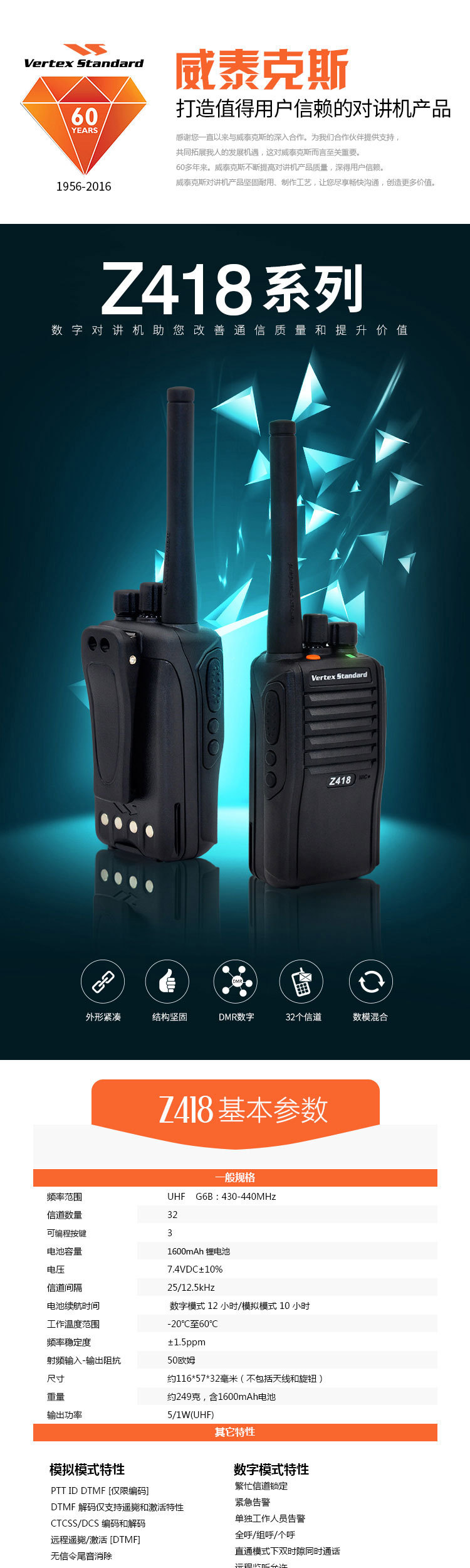 摩托羅拉威泰克斯Z418 對(duì)講機(jī) 大功率數(shù)字手臺(tái)