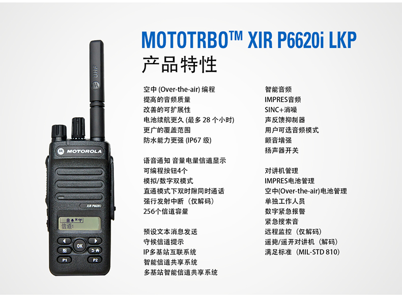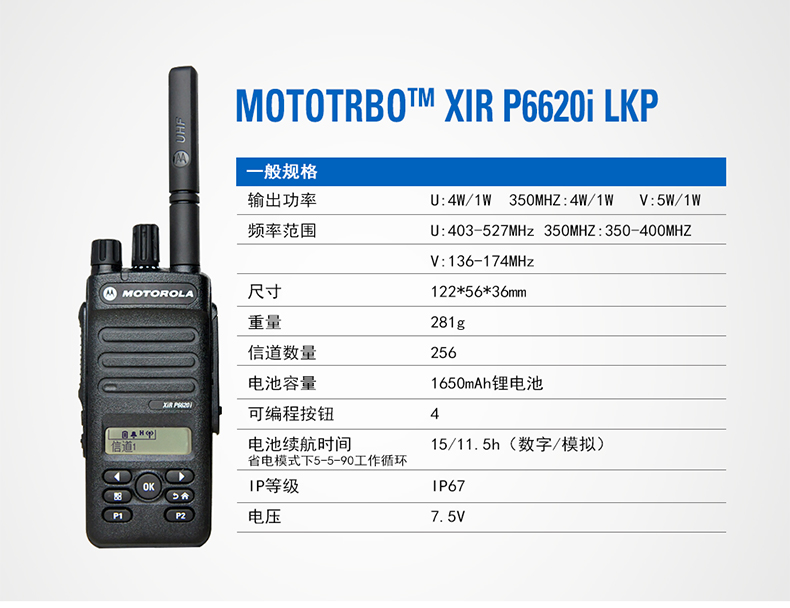 摩托羅拉(Motorola)XIR P6620i 數(shù)字對講機 專業(yè)商用 數(shù)模兼容