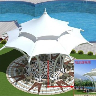 膜結(jié)構(gòu)建筑中常用的膜材料有PTFE膜材料和PVDF膜材料兩種。PTFE膜材料是指在極細(xì)的玻璃纖維編織成的基布上涂覆PTFE(聚四氟乙烯)而形成的復(fù)合材料。PVDF膜材料是指在聚脂纖維編織的基布上涂覆PVC(聚氯乙烯)后再加版100%PVDF(聚偏氟乙烯)表面涂層而形成的復(fù)合材料。