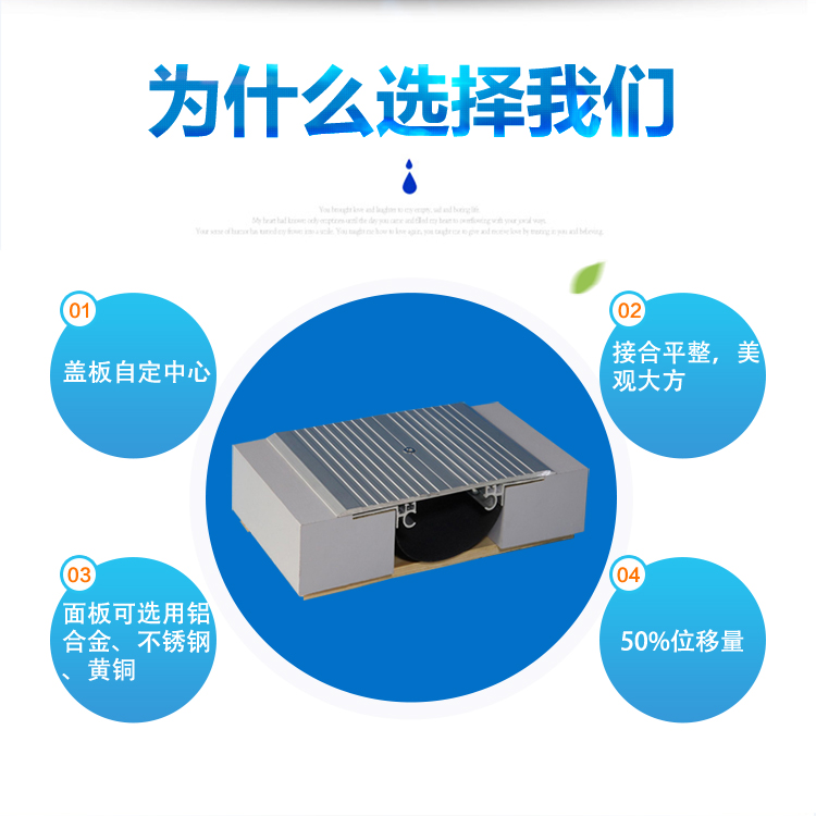 1:伸縮性能強(qiáng),安裝完成后美觀,鋁合金蓋板為花紋型材板,具有一定的防滑功能。