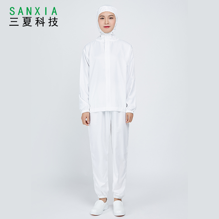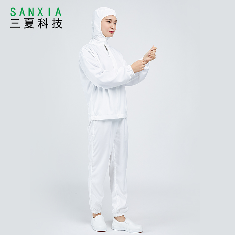 廠家批發(fā)防靜電服無塵車間連帽分體白色拉鏈防塵凈化服生物制藥廠