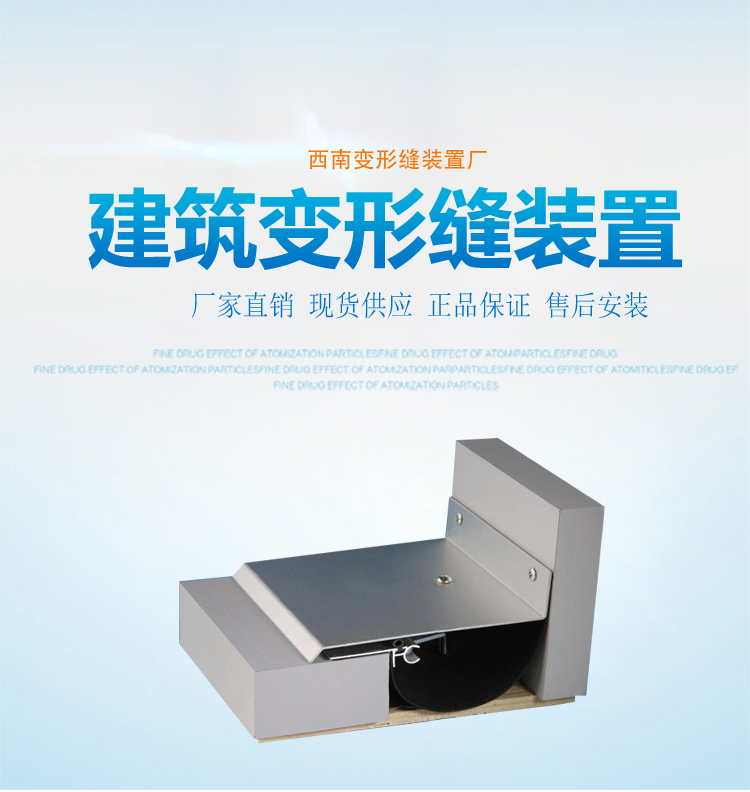 建筑變形縫內(nèi)墻變形縫由鋁合金基座、鋁合金邊側(cè)蓋板、鋁合金中心滑動蓋板組成。適用縫寬50~450mm。中心滑動蓋板是夾在邊側(cè)蓋板與鋁合金基座之間的,具有外觀整潔、安裝方便等特點。