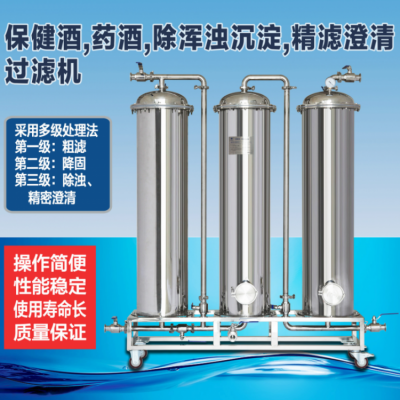 本機(jī)適用于,以中藥材寖泡、浸提、為主要生產(chǎn)工藝的保健酒、藥酒、罐裝前的處理,采用多級(jí)處理法。