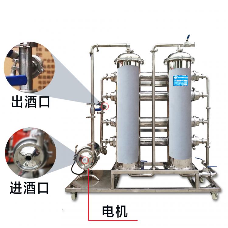 發(fā)酵型果酒、米酒、黃酒由于工藝原因,在發(fā)酵過程中容易帶入很多固性蛋白、植物膠體、淀粉、植物纖維、細(xì)菌、酵母等復(fù)雜成分導(dǎo)致酒體渾濁,沉淀等現(xiàn)象。我公司針對低度果酒、黃酒、米酒、酒體特征,采用新超濾膜分離除雜澄清技術(shù),對酒中易產(chǎn)生渾濁的物質(zhì),及細(xì)菌進(jìn)行超濾攔截處理。凈化處理后的酒,不影響原有的酒體風(fēng)味及口感,清澈透明度高達(dá)99.9% , 可直接進(jìn)入灌裝,裝瓶工序。