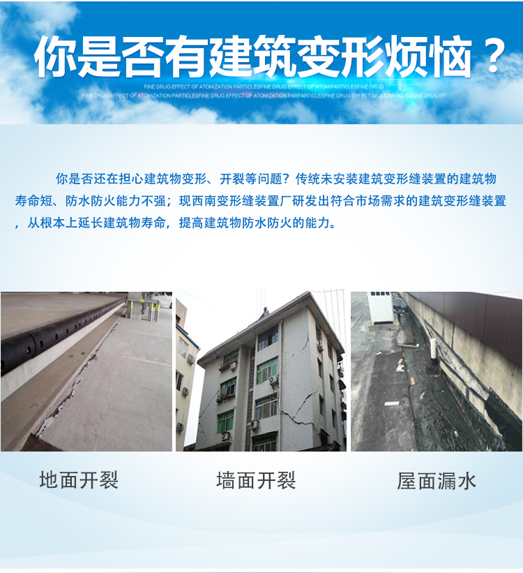 成都華安潤成金屬材料有限公司專業(yè)生產(chǎn)建筑變形縫裝置,建筑鋁合金變形縫,該產(chǎn)品可使用建筑伸縮縫屋面系統(tǒng),地面系統(tǒng),墻面及頂棚系統(tǒng)??赏瑫r滿足于建筑伸縮縫,沉降抗震等功能要求。