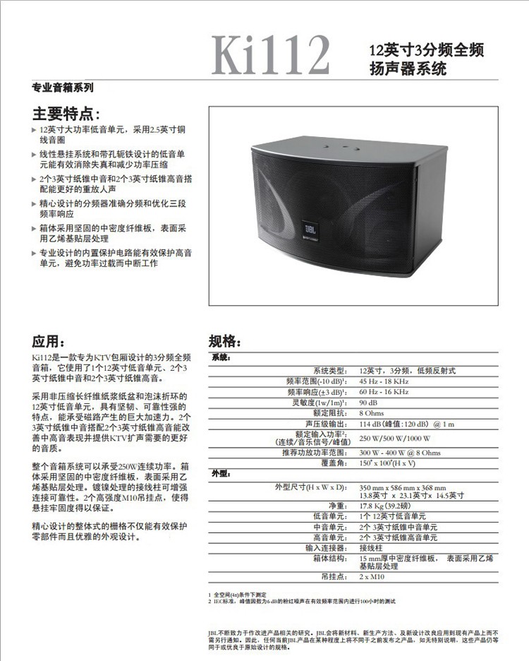 Ki系列專業(yè)音箱均采用了四層音圈線設(shè)計的低音單元以提供大功率輸出。線性懸掛系統(tǒng)和帶孔軛鐵設(shè)計的低音單元能有效消除失真和減少功率壓縮。它們帶有精心設(shè)計的分頻器,能夠優(yōu)化功率響應(yīng)和中頻段的。