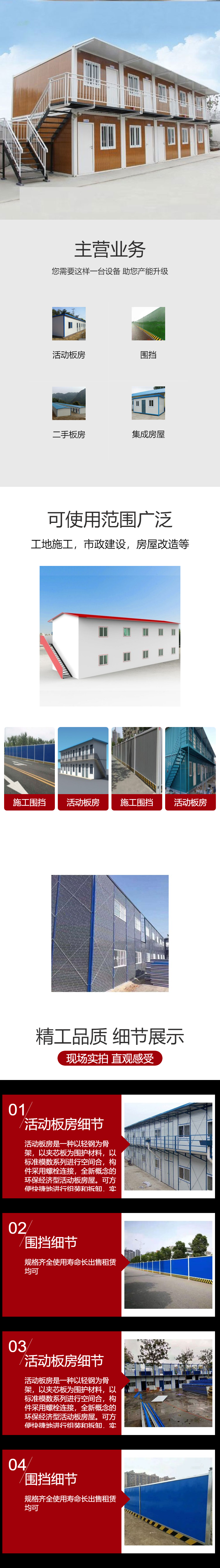 成都市雅杰活動板房有限公司是一家專注于從事:住人集裝箱、施工圍擋、集裝箱活動崗亭等的銷售企業(yè)。公司憑借優(yōu)越的產(chǎn)品優(yōu)良德性能、合理的材料價格、真誠的售后服務(wù)和良好的公司信譽贏得了用戶的贊譽和信賴。