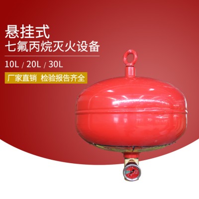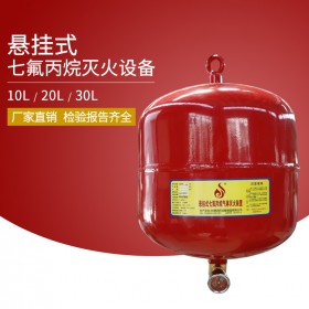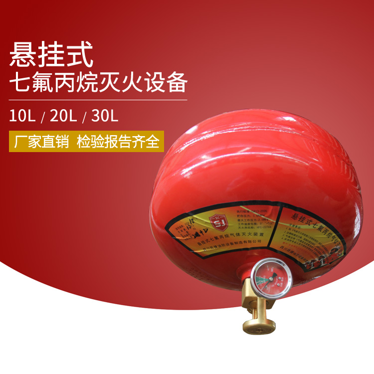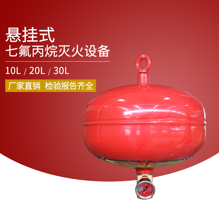 懸掛式七氟丙烷氣體滅火裝置(感溫型)由滅火劑儲(chǔ)瓶、感溫釋放組件、懸掛支架、壓力表等組成,不需安裝滅火劑輸送管道,不需設(shè)置專用的儲(chǔ)瓶間,不用與火災(zāi)報(bào)警系統(tǒng)聯(lián)動(dòng),采用懸掛或壁掛式安裝,當(dāng)火災(zāi)發(fā)生時(shí),感溫玻璃球破裂,感溫釋放組件開(kāi)啟,直接向防護(hù)區(qū)噴射滅火劑,滅火劑無(wú)管路損失,滅火速度更快、效率更高。