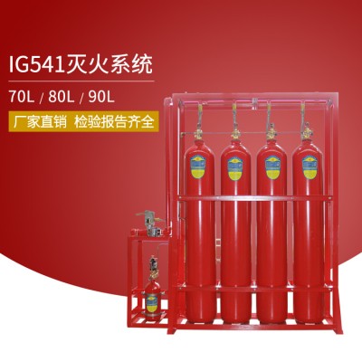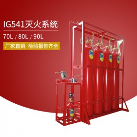 IG541混合氣體滅火系統(tǒng)包括:滅火瓶組、高壓軟管、滅火劑單向閥、啟動瓶組、安全泄壓裝置、選擇閥、壓力信號器、噴頭、高壓管道、高壓管件等組成。