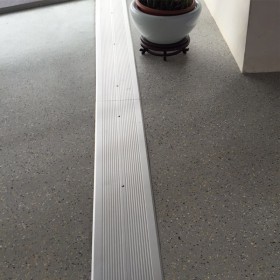 4.樓地面變形縫裝置應(yīng)與混凝土主體結(jié)構(gòu)用膨脹螺栓固定。一般有兩種情況:當(dāng)先固定變形縫裝置,后做裝飾樓地面時(shí),鋼筋混凝土結(jié)構(gòu)應(yīng)按構(gòu)造詳圖的要求向上做翻遍或向下做凹槽;當(dāng)先做樓地面裝飾層后安裝變形縫裝置時(shí),講由生產(chǎn)廠家配合提供準(zhǔn)確槽口尺寸,并在設(shè)計(jì)項(xiàng)目中交待。