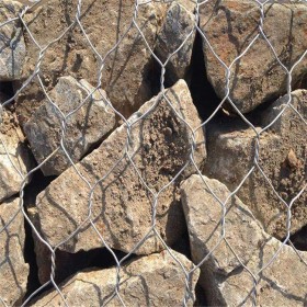 石籠網(wǎng)是使填石固定就位的鐵絲或聚合物絲網(wǎng)格式制作物。鐵絲籠是由鐵絲編織的網(wǎng)格或焊接而成的結(jié)構(gòu)物。這兩種結(jié)構(gòu)可以是電鍍的,編織的鐵絲箱可另外涂上PVC。用抗風(fēng)化堅硬石塊作填料,它在石箱或石籠沉排中不會因磨蝕而很快破碎。裝有不同類型的塊石的石籠有不同的特性。多角的塊石能相互很好地聯(lián)鎖在一起,用其填裝的石籠不易變形。