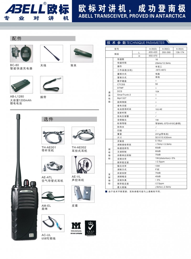 歐標(biāo)A-30雷霆戰(zhàn)將 對講機(jī) 堅(jiān)固耐用防水防摔 大功率無線電對講機(jī)
