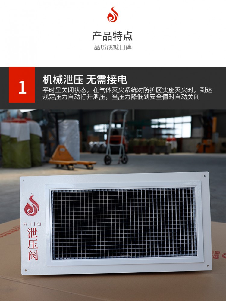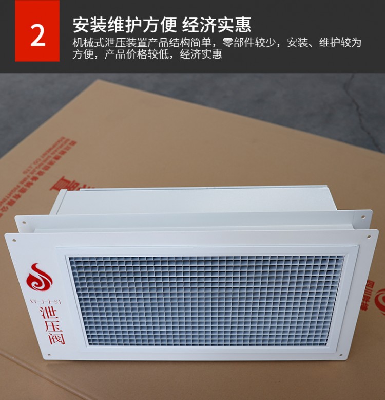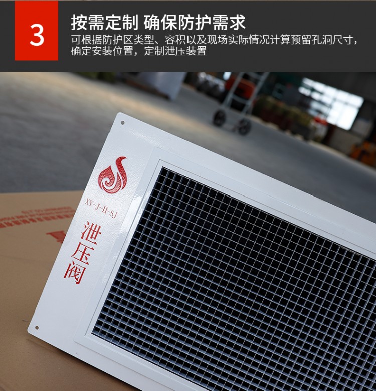 機(jī)械型泄壓裝置也稱自動泄壓口,安裝在滅火防護(hù)區(qū)墻體上,平時呈關(guān)閉狀態(tài),當(dāng)氣體滅火系統(tǒng)對防護(hù)區(qū)實(shí)施滅火時,泄壓裝置在一定壓力下自動打開泄壓,確保防護(hù)區(qū)安全;當(dāng)壓力降低到一定值時,泄壓裝置自動關(guān)閉。泄壓裝置可以保證防護(hù)區(qū)的密閉性,滿足滅火的需要,同時確保防護(hù)區(qū)安全。