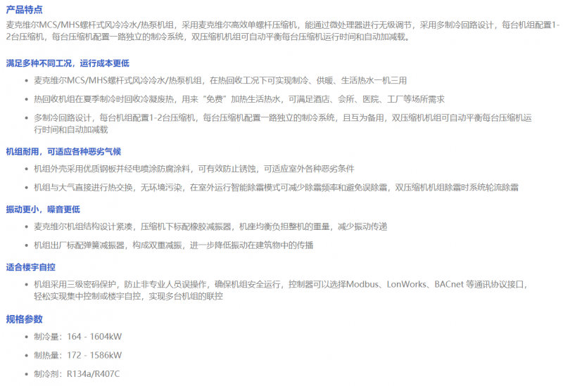 四川中央空調(diào)工程公司 麥克維爾風(fēng)冷冷水機(jī)組安裝施工