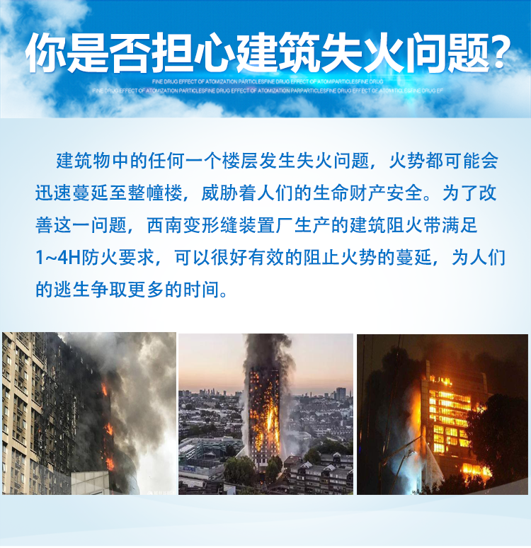 不銹鋼阻火帶內(nèi)部材料采用優(yōu)質(zhì)阻火巖棉,阻火帶達(dá)到國家GB/T 9978.1-2008規(guī)定,燃燒時(shí)間≥200min。 不銹鋼采用0.4厚的201或304材質(zhì),能有效確保建筑物的消防效果,保護(hù)建筑物的安全。 不銹鋼阻火帶適用于50-500mm的縫寬,特殊規(guī)格,也可根據(jù)工程需要定制。 不銹鋼阻火帶產(chǎn)品通過相關(guān)部門檢測認(rèn)證,充分達(dá)到消防要求級(jí)別,是眾多建設(shè)單位的供應(yīng)商。