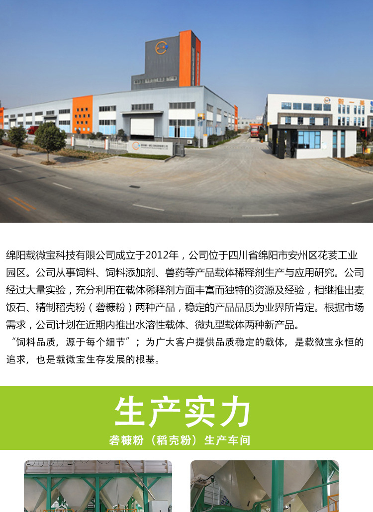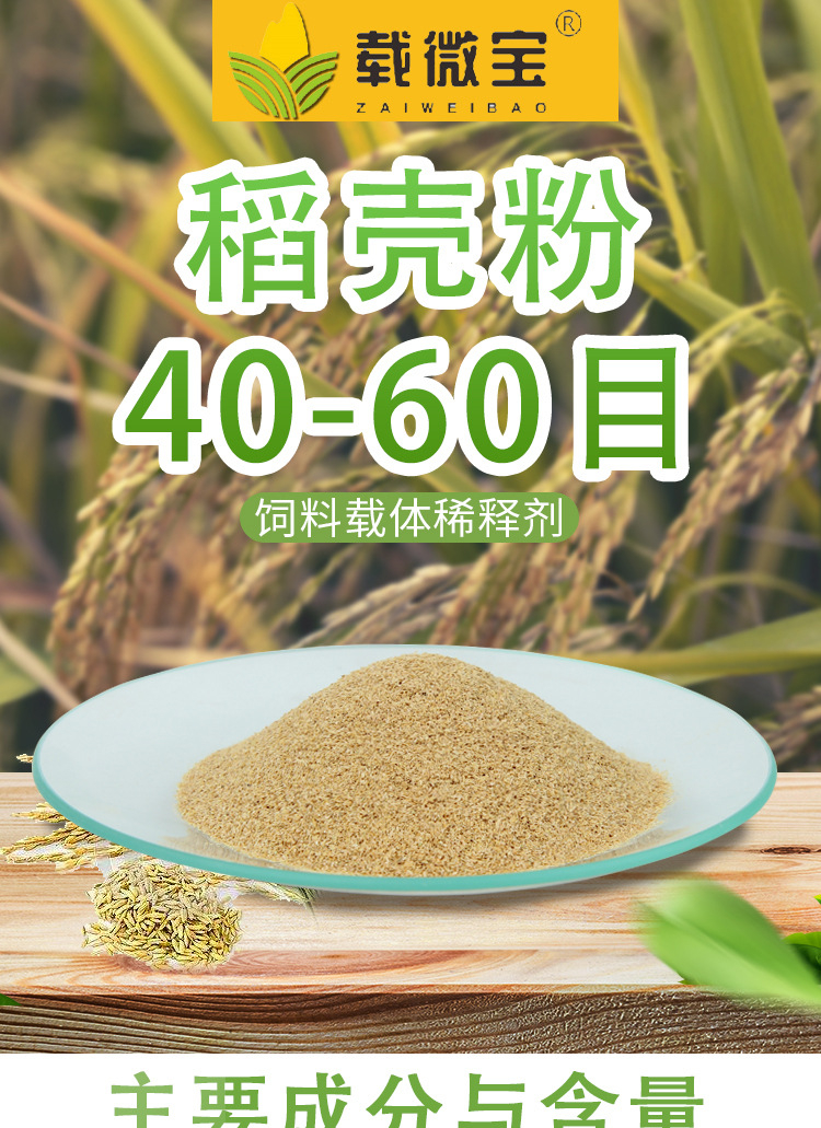 綿陽載微寶科技有限公司根據(jù)飼料添加劑生產(chǎn)過程中對稻殼粉的特殊要求,綜合飼料企業(yè)在生產(chǎn)采購中對飼料載體稀釋劑的各種困惑和難點,研究開發(fā)了專門針對稻殼原料的新型粉碎機,該機克服了球磨粉碎機生產(chǎn)的稻殼粉過粉率高,粒度分布不均勻及錘片式粉碎機所生產(chǎn)的稻殼粉顆粒粗,顆粒形狀差(長條形)等特點,所產(chǎn)精制稻殼粉水分低(特殊烘干工藝),顆粒規(guī)則(主要呈球型),流動性適中,容重較普通稻殼粉有所提高(0.45-0.65),更加接近被承載營養(yǎng)物質(zhì)的容重,混合均勻后不會分級,是非常良好的飼料載體。