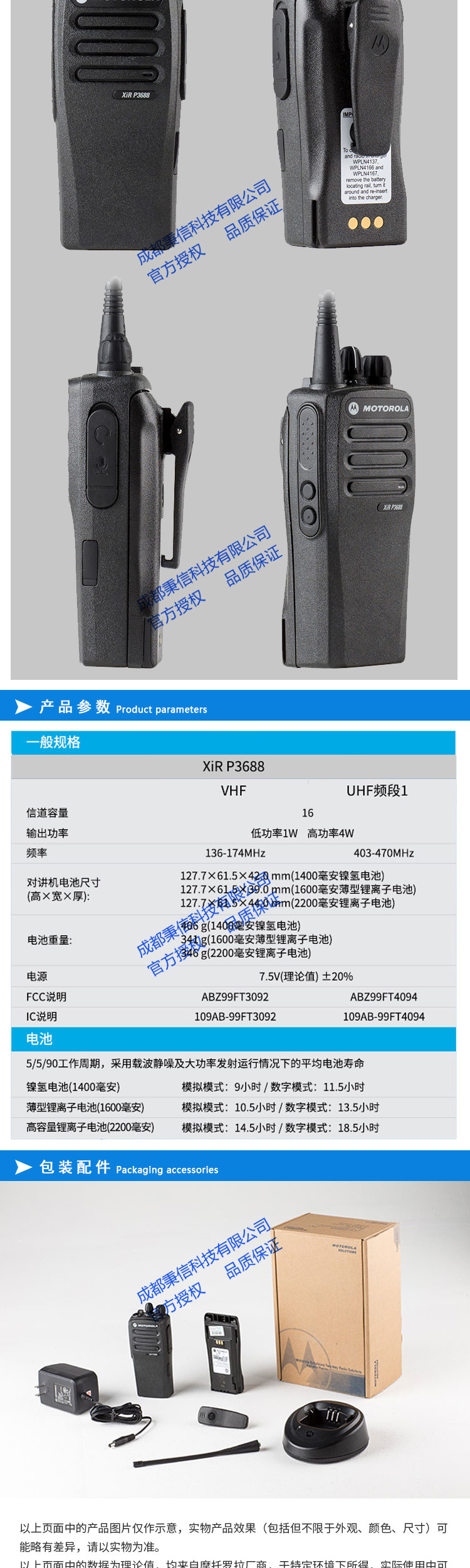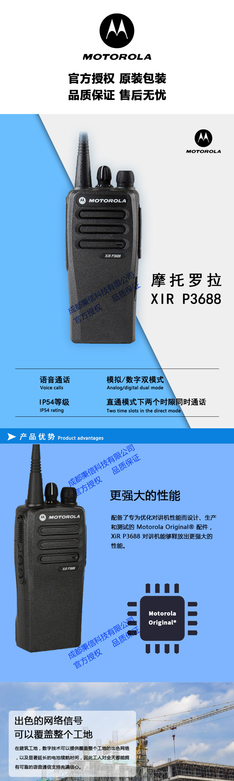 摩托羅拉Xir P3688數(shù)字對講機(jī) 2200mAh鋰電,GP3688升級款