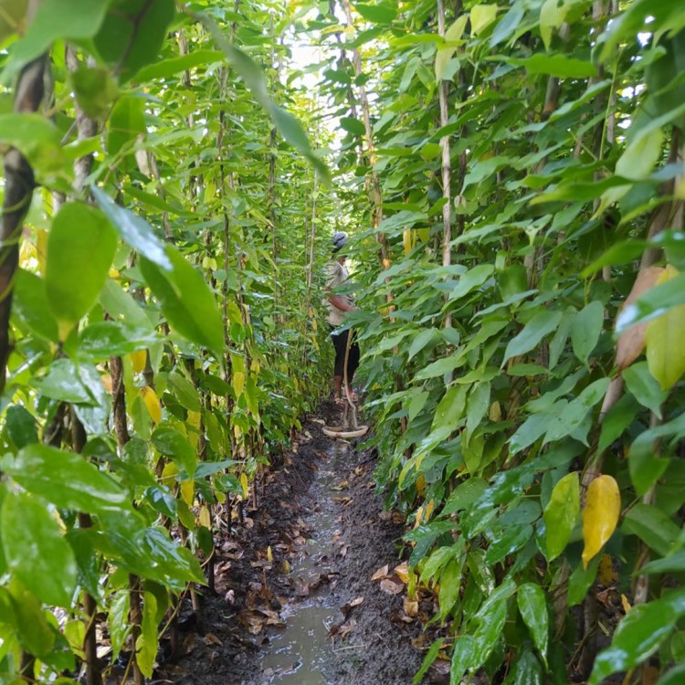 油麻藤根系發(fā)達,藤條纏繞極強,常春油麻藤莖粗可達30厘米,高十幾米,長幾十米,或彎曲似蛇,或扭曲成繩索。藤蔓左右相連,上下牽掛,獨霸一方。藤條雖彪悍,花朵卻可愛,幾十朵紫紅色蝶形花簇擁一起懸掛在老枝上,猶如萬千雀鳥棲息,巍巍壯觀。藤曼上還可以看到上一年結(jié)下的豆莢,長一尺有余,表面留著銹跡斑斑的絨毛。