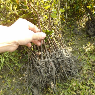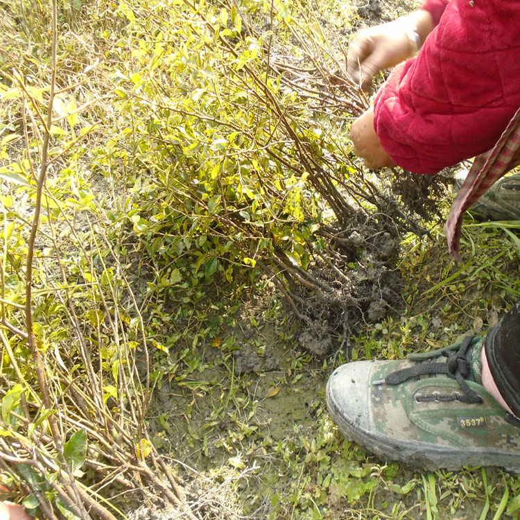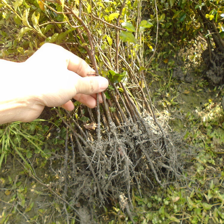 由遂寧組丘陵中部紫色泥(頁)巖風化物發(fā)育成的紅石骨子土和泥巖風化物形成的沙骨子土中,生長的金彈子細根少,樁較重,深根性,難以挖出完整的根系,斷根后土壤里未被取出的的根系會發(fā)芽繼續(xù)生長。樁通常干粗根細,難有隆基,所以個別樁為了提高品質(zhì)也可以倒栽。