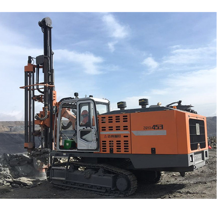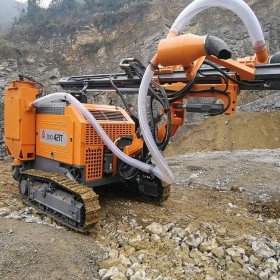 自動換釬及強大的越野性能縮短了鉆機輔助時間。大排量高壓螺桿式空壓機使得排渣徹底,更有利于鑿巖速度的大幅度增加,減少鉆機的消耗。強有力的推進、回轉設計,在滿足高速鑿巖的基礎上,解決了復雜巖層的卡鉆難題。單人操作降低了人員成本。