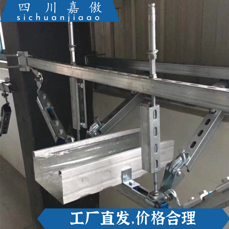 抗震支吊架是以地震力為主要荷載的抗震支撐系統(tǒng),針對的是遭遇到設(shè)防烈度的地震時能將管道及設(shè)備產(chǎn)生的地震作用傳到結(jié)構(gòu)體上的一種抗震支撐措施??拐鹬У跫苁窃诎惭b工程中將空調(diào)、消防、強(qiáng)電、弱電等各專業(yè)的支吊架綜合在一起,統(tǒng)籌規(guī)劃設(shè)計,整合成一個統(tǒng)一的支吊系統(tǒng)。大型室內(nèi)工程的設(shè)備、風(fēng)道、電纜橋架及各類管道的綜合排布與安裝往往會影響到本身及相關(guān)專業(yè)的施工進(jìn)度、觀感和空間的合理利用,而支吊架的選擇與安裝又是決定設(shè)備管道綜合排布是否合理、美觀的前提條件。
