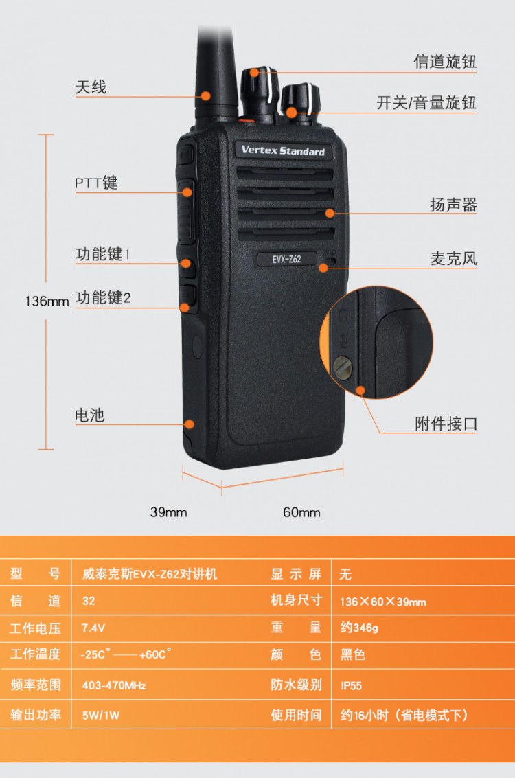 信道間隔: 25KHZ(寬帶)12.5KHZ(窄帶)