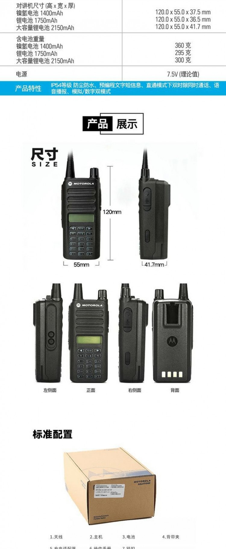 標準配置: 電池|天線|充電器|機身|背夾