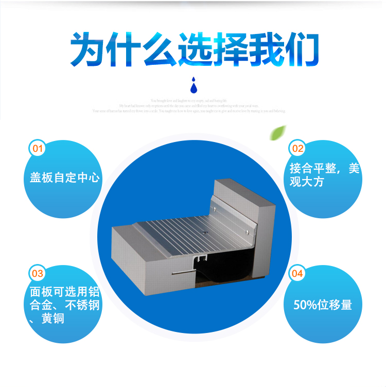 貴州變形縫裝置廠生產(chǎn)的建筑鋁合金變形縫伸縮縫蓋板的構造是由梳形板、連接件及錨固系統(tǒng)組成。有的梳齒板式變形縫,在梳齒之間填塞有合成橡膠(嚴禁使用再生橡膠),以起防水作用。。梳齒板式變形縫,亦為鋼板手指狀接縫,根據(jù)梳齒的支承情況可分為支承式和懸臂式。在其施工中定位角鐵的拆除一定要及時,以保證變形縫因溫度的變化而自由伸縮,也可將相對的梳齒板固定在兩個不同的定位角鐵上,讓它們連同相應的角鐵自由伸縮。要嚴格控制好梳齒間的槽向間隙。