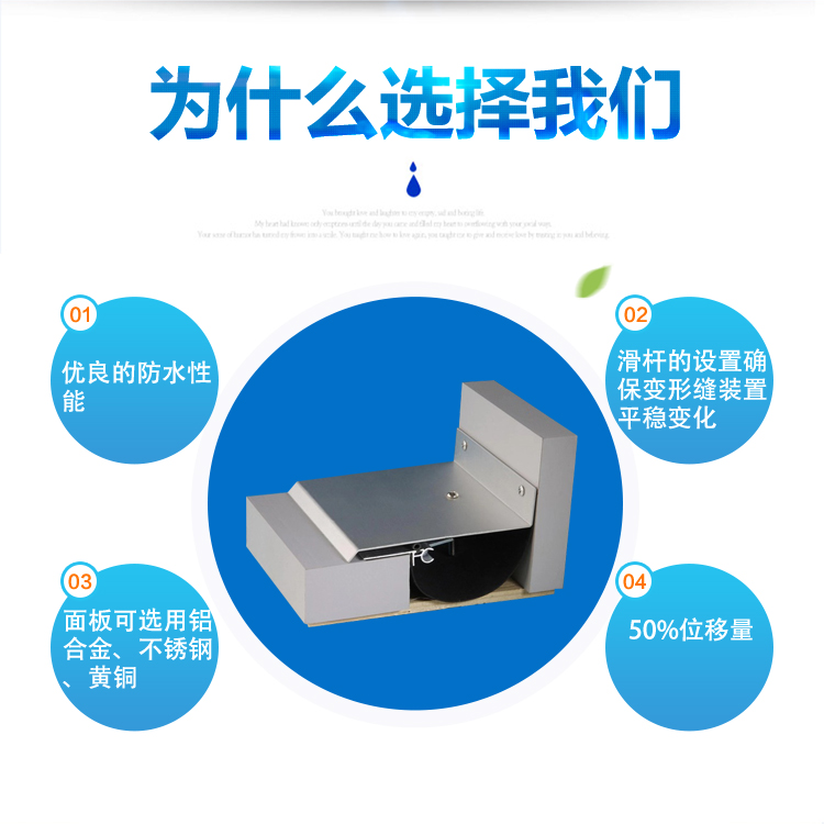 變形縫滑竿:蓋板型變形縫的滑竿是變形縫蓋板和基座的鏈接構(gòu)建,變形縫滑竿一般呈45度斜防止變形縫基座軌道上,起到鏈接及固定變形縫蓋板的作用。材料主要有不銹鋼及鍍鋅鋼板構(gòu)成。