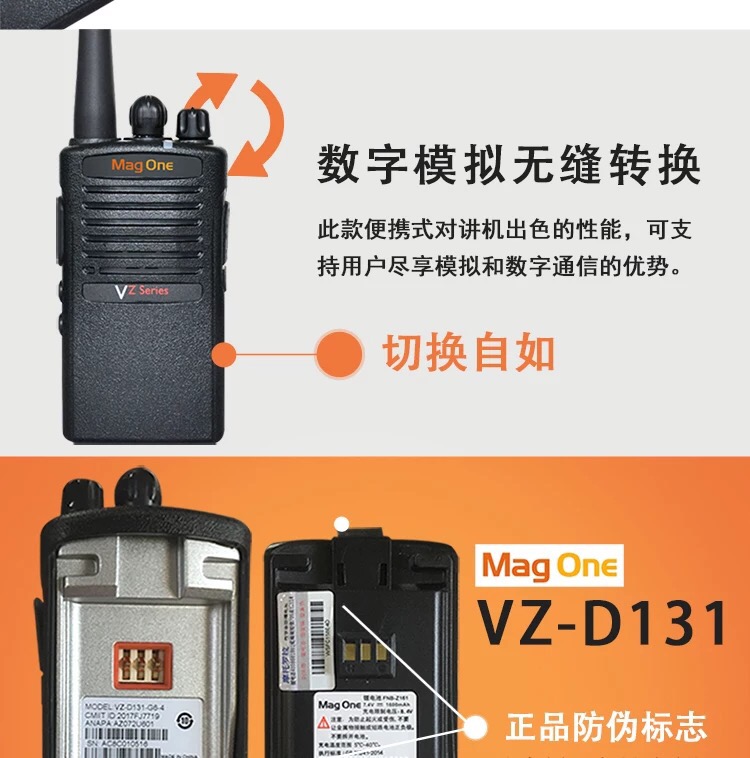 摩托羅拉(Motorola)MAGONE VZ-D131 數(shù)字對講機(jī) 商用 民用 手臺