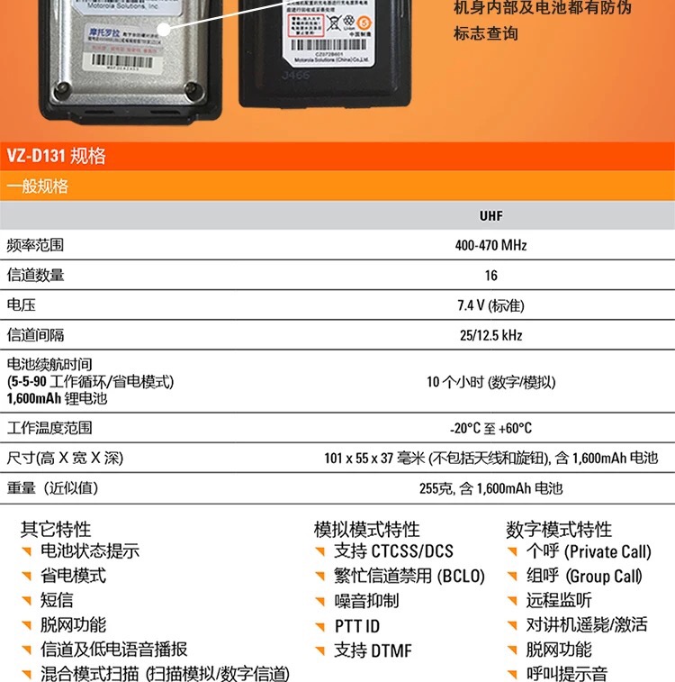 對(duì)講機(jī)制式: 數(shù)字信號(hào)