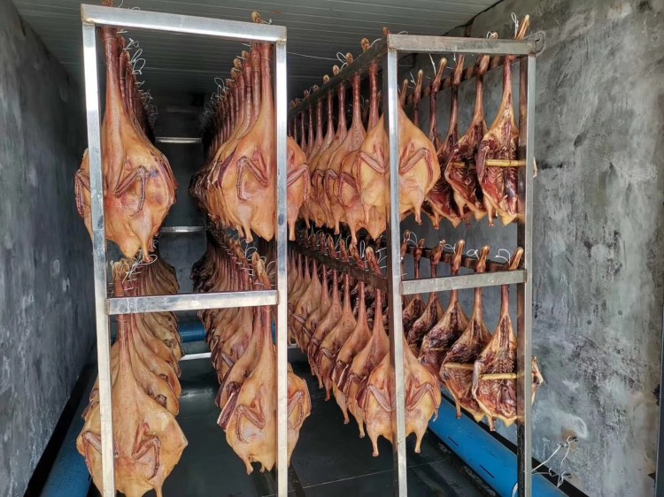 板鴨由于其獨(dú)特的風(fēng)味,深受廣大消費(fèi)者歡迎,但板鴨加工一直采用手工作坊式的生產(chǎn)工藝,腌制時(shí)間長達(dá)7天以上,風(fēng)干時(shí)間為20-30天,生產(chǎn)周期長,產(chǎn)品質(zhì)量不穩(wěn)定,而且只有冬季才能生產(chǎn),生產(chǎn)效益較低。西部大旗冷風(fēng)干燥機(jī)應(yīng)用后:擺脫了季節(jié)性生產(chǎn)困境,實(shí)現(xiàn)全年化生產(chǎn),風(fēng)干時(shí)間縮短為3天,加工生產(chǎn)周期大為縮短,提高了生產(chǎn)效率,降低了生產(chǎn)成本。解決了板鴨季節(jié)性生產(chǎn)的問題,實(shí)現(xiàn)常年規(guī)?;a(chǎn)。使板鴨營養(yǎng)和衛(wèi)生質(zhì)量有了很大的提高,具有很強(qiáng)的市場競爭優(yōu)勢。