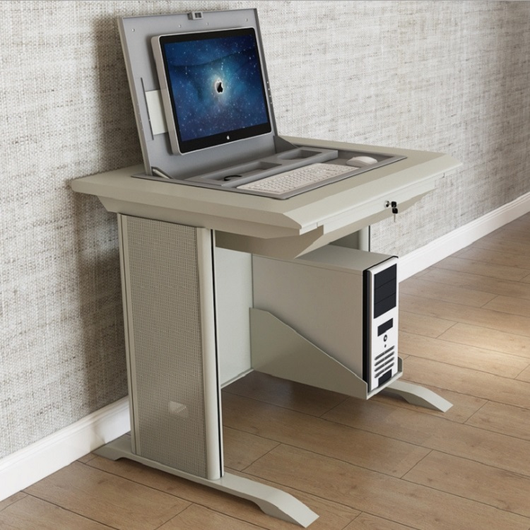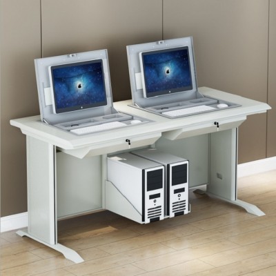 翻轉(zhuǎn)器機房電腦桌電教室翻轉(zhuǎn)電腦桌多媒體學(xué)校培訓(xùn)隱藏式電腦桌
