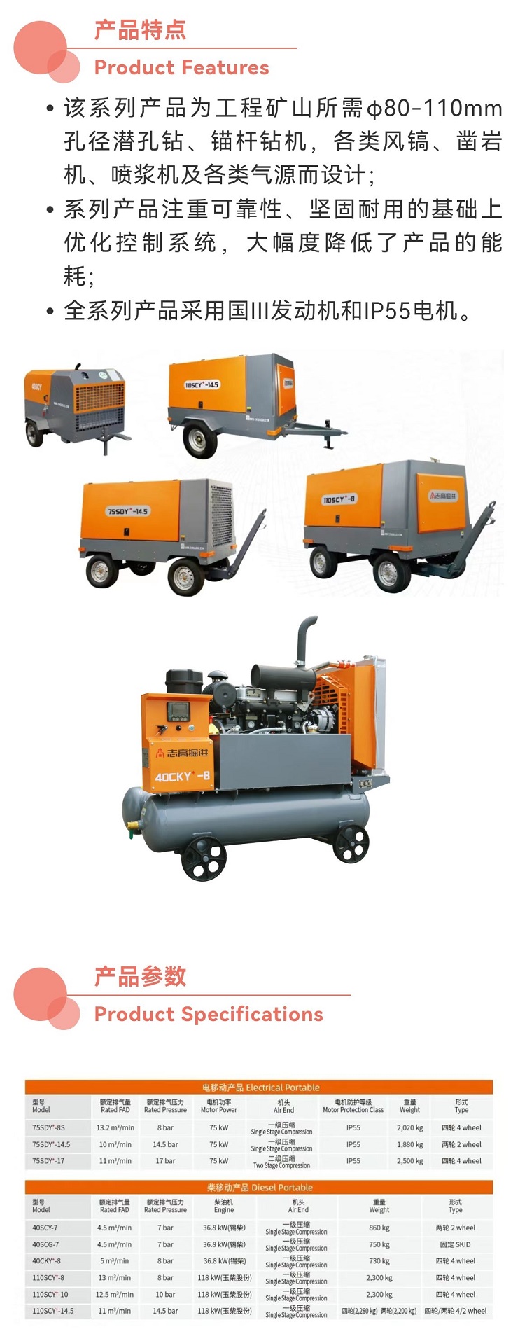 成都志高空壓機(jī) 志高掘進(jìn)75SDY-8電動(dòng)移動(dòng)螺桿空壓機(jī)批發(fā) 75KW電機(jī)