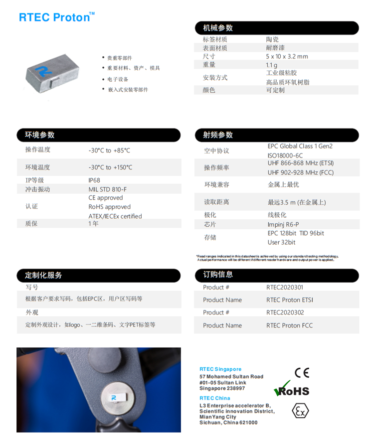 RFID陶瓷標簽 耐高溫陶瓷標簽 超高頻抗金屬標簽 抗金屬陶瓷標簽 嵌入式標簽 Proton