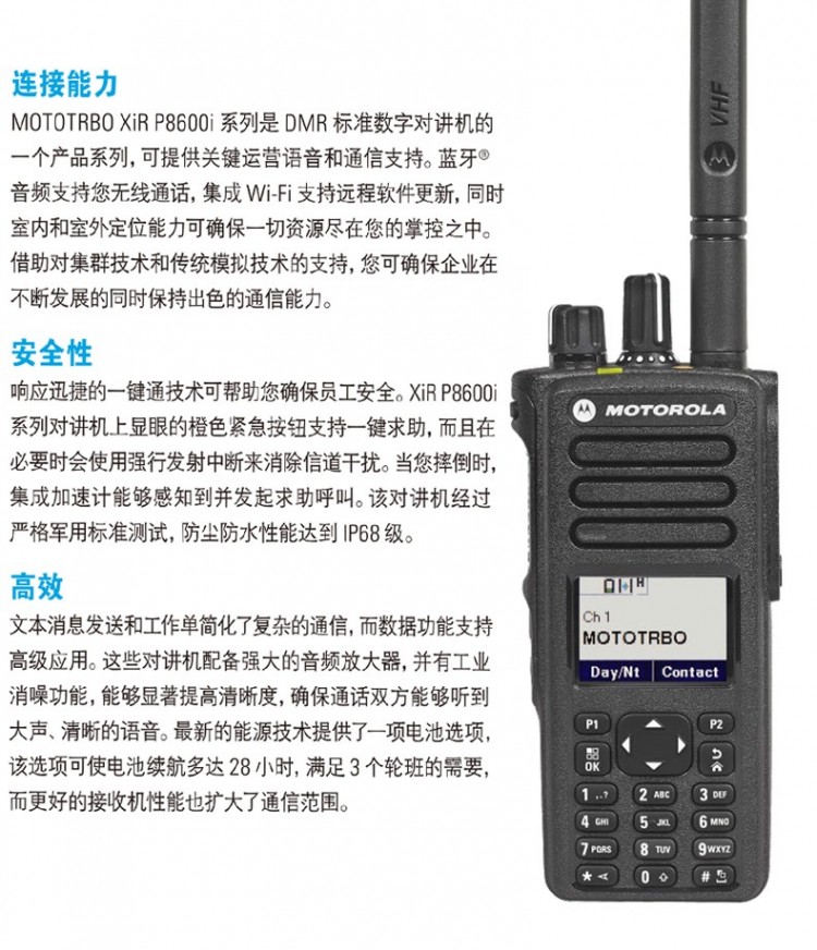 四川【廠家直銷】摩托羅拉(Motorola) 對講機(jī)XIR P8660I數(shù)字對講機(jī)專業(yè)1000信道IP68屏幕全鍵盤 非防爆V段標(biāo)配:136-174MHz