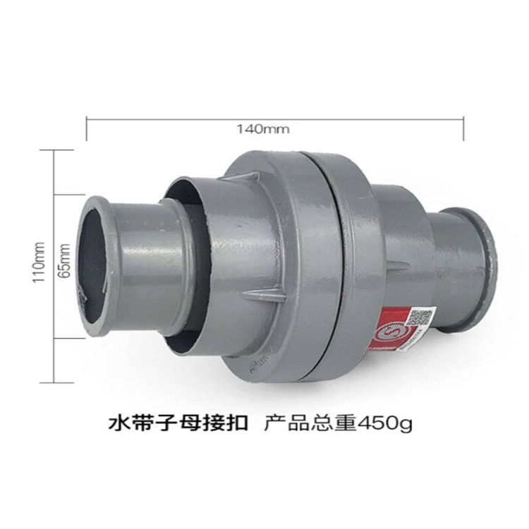 安裝和使用:KD型內(nèi)扣式接口安裝在消防水帶兩端,置于消火栓箱內(nèi)。發(fā)生火警時(shí),取出水帶,把接口本體上的兩個(gè)扣爪扣入消防栓接口的內(nèi)槽,順時(shí)針旋轉(zhuǎn)至位,另一端用上述方法操作連接于直流水槍上,逆時(shí)針旋轉(zhuǎn)消火栓手輪,即可輸水滅火。維護(hù)保養(yǎng):1、經(jīng)常檢查橡膠密封圈有無老化、破損、接口本體有無腐蝕現(xiàn)象,否則應(yīng)更換。