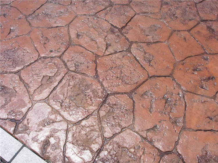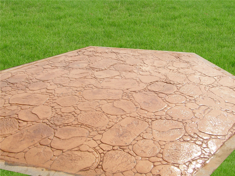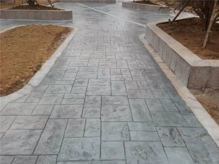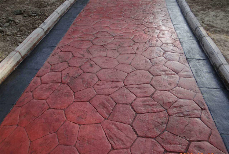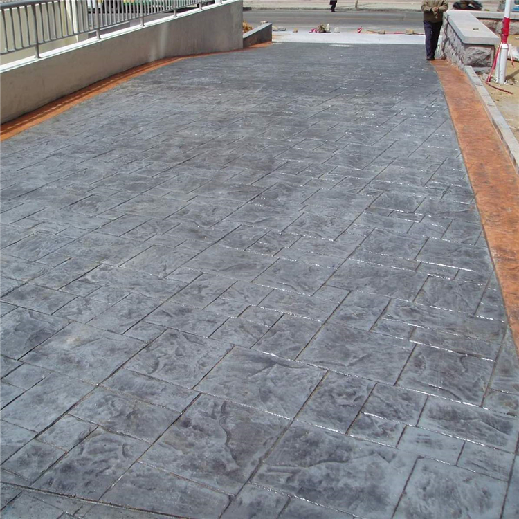 5、使用藝術(shù)地坪模具對(duì)地坪面層進(jìn)行紋理處理。藝術(shù)地坪模具應(yīng)配套使用,首先確定好紋理的分布方向,選好一塊模具放置的位置和角度,然后其它的模具依次緊貼一塊模具放置。彩色混凝土藝術(shù)地坪壓模采用壓模,壓模應(yīng)由技術(shù)較好的人員進(jìn)行作業(yè)以保證壓紋深度一致和模具放置的準(zhǔn)確性。