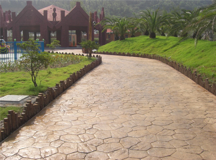 7、理論上對(duì)藝術(shù)地坪封閉2-3天后進(jìn)行沖洗,正常情況下為了防止新造路面被污染,工程全部紋理壓印完成后統(tǒng)一進(jìn)行沖洗。沖洗時(shí)不必將脫模粉全部沖洗干凈,應(yīng)留有10%左右的脫模粉顏色,這樣的藝術(shù)地面就會(huì)有效果很好的漸變效果。