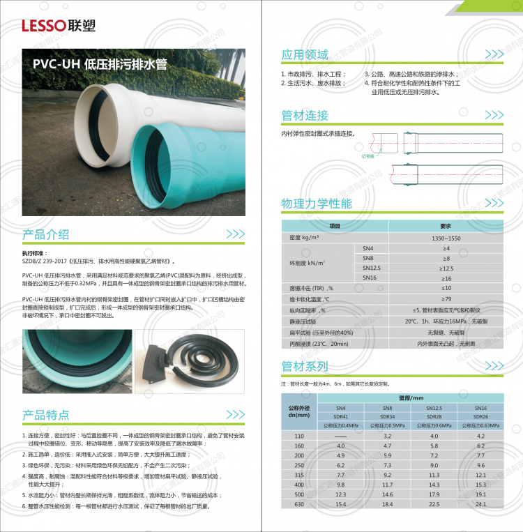 PVC-UH低壓排污排水管 成都聯(lián)塑管道 專業(yè)定制