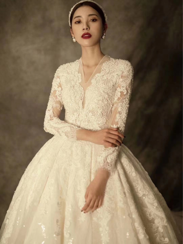 長袖婚紗 冬季婚禮婚紗 婚紗冬季新款 成都婚紗店 租婚紗大概價格 租賃婚紗套餐價目表 復(fù)古長袖蕾絲婚紗