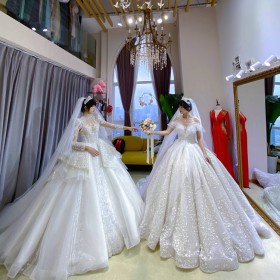 【套餐內(nèi)容】共試穿3套,婚紗1套任選,禮服2套任選?。?! 全場通選,大拖尾儀式婚紗,輕紗,中式嫁衣,晚禮服超200多款可選