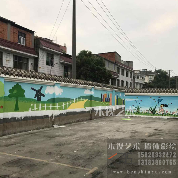 1:大型公共場所宣傳畫及裝飾性壁畫:幼兒園墻繪,社區(qū)宣傳畫墻繪,廠房墻繪,立柱彩繪,天橋彩繪 風景區(qū)壁畫等