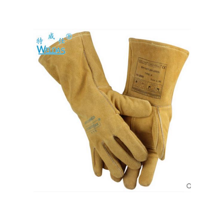 "10-2000手套"是威特仕的創(chuàng)新設(shè)計(jì),長度為35cm,外層采用耐磨、舒適柔軟及高性能隔熱效果的牛二層芯皮制成。采用杜邦Kevlar 4線及5線高拉力防火線縫制。加上舒適的特舒柔(COMFOflex)內(nèi)里層,一直以來深受焊接技術(shù)人仕的青睞。