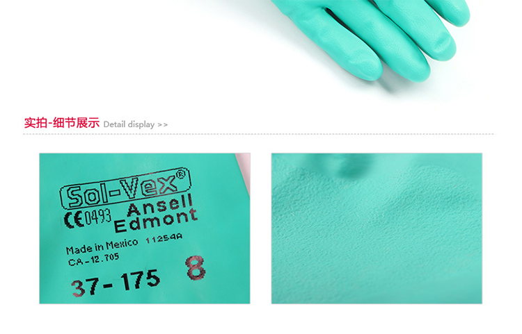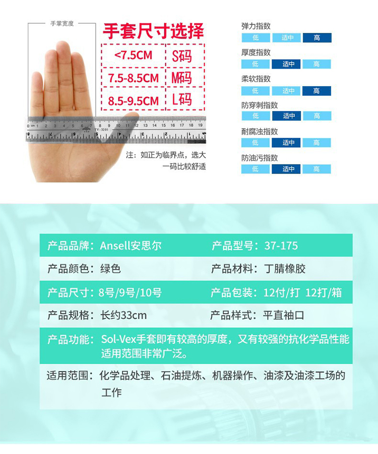 Ansell/安思爾37-175防溶劑手套 防油耐酸堿手套 防化學(xué)品防護手套